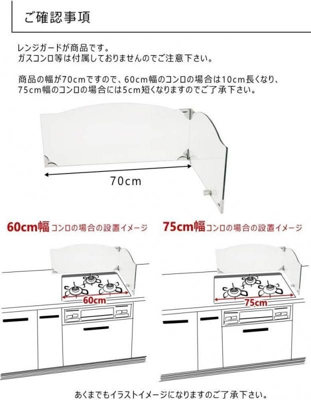 クリアガラスの美しい曲線デザインがキッチンを彩り、汚れを防ぎます。スッキリ設置で高級感漂うレンジガード。